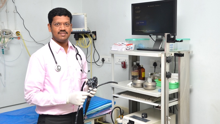 Dr. Sasi Anand is a prominent Gastroenterologist from Trichy with a successful practice at Frontline Hospital and Pranaao Clinic in the morning and evening hours respectively. Dr. Anand’s key areas of clinical interest include ERCP interventions, Alcoholic Liver Disease, Pancreatitis, Viral Hepatitis, G.I. bleed management and Inflammatory Bowel Disease.